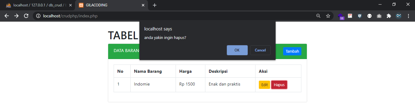 Silahkan coba di klik button tambah datanya, kalau sudah berhasil silahkan lanjut ke bagian edit.